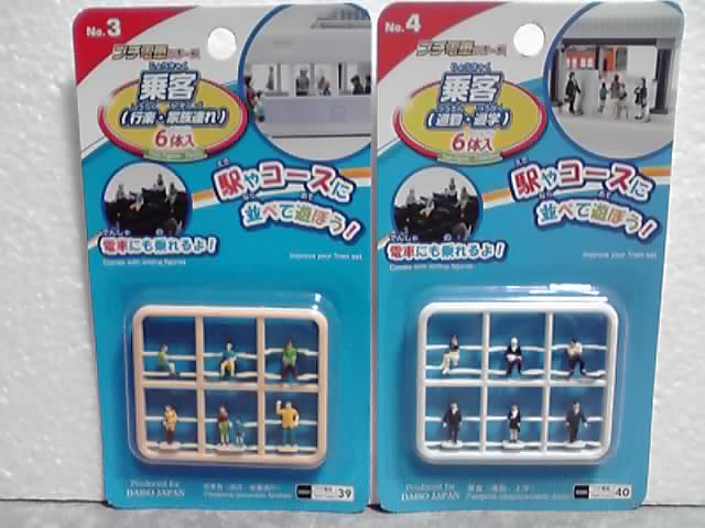 「プチ電車シリーズ」の電車に乗せたり、駅のホームに飾ったりする為の物ですが、ジオラマとかにも使えそう。そのままでもいいですし、ガンダムマーカーとかで服を塗り替えるのも面白そうです(^^)