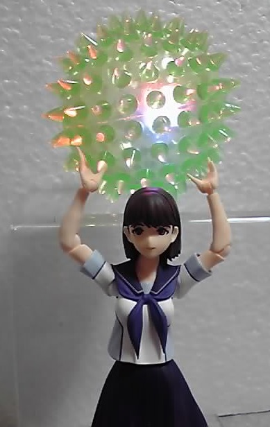 光らせるにはある程度の高さから落とさなくてはいけないし、グズグズしてたら点灯が終わります。なので光らせたボールをフィギュアに持たせるのは、わりと大変でした(~_~;)