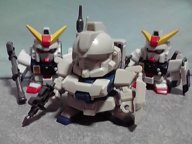 後ろの陸戦型ガンダム2機は、プライズ景品「MBシリーズ SDガンダム」の物です。