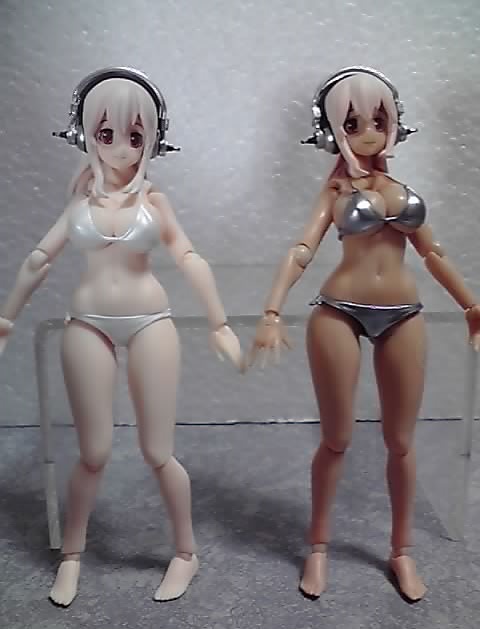 ←はいつものfigma すーぱーそに子(水着ver.)で、→は最近届いたfigma すーぱーそに子(日焼けver.)です。日焼けver.はリペイント商品で、グッスマショップでの受注生産品です。