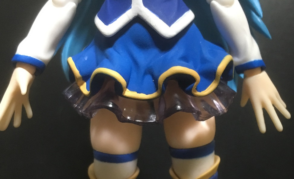 一連の画像のとおりアクア様はミニスカートを履いていらっしゃるのですが、アニメではスカートの下のパンツが見えることは無く、特にスカート前面にいたっては捲れあがるようなコトすら皆無だった気がします。