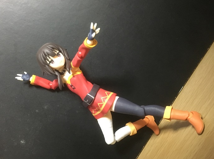 珍妙なポーズですが、めぐみん自体がやたらとポーズを取る上、大概が珍妙なので問題なし。