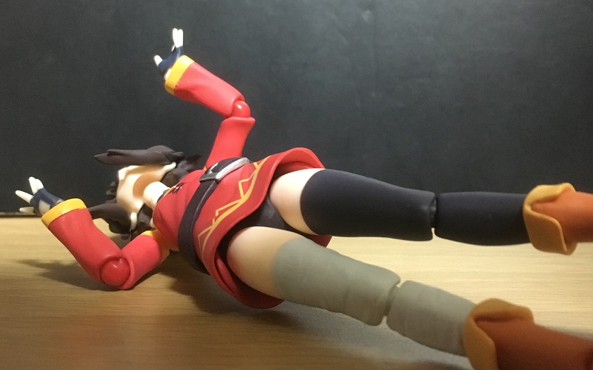 アニメ本編ではパンチラしたことは無いと思いますが、めぐみんが黒パンだということはよく知られています。詳しくは、figma カズマを紹介する時に説明する予定です。(待ちきれない人は、自分でググってみてね)
