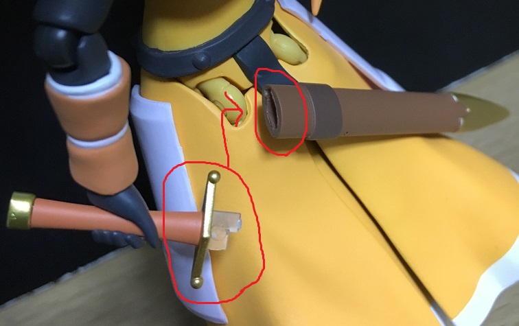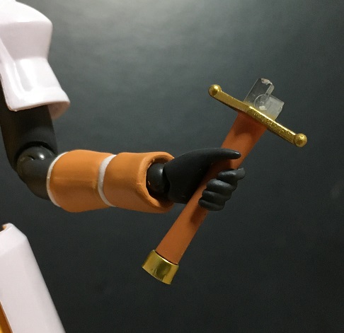 専用の手首パーツに通すようにして持たせ、はずした部品を取り付けます。