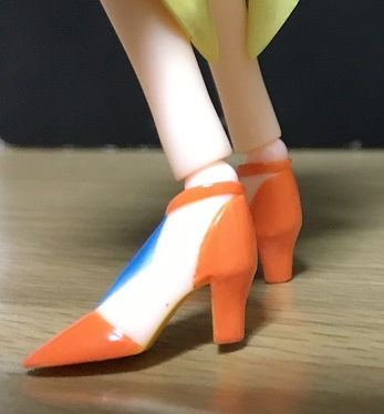 接地面は少ないものの、とりあえず両足が地面に着いていたらバッチリ立ってくれます。衣装や髪型のせいで背面側が重そうですが、それらもわりと軽めなので後ろに倒れ易いということもないです。