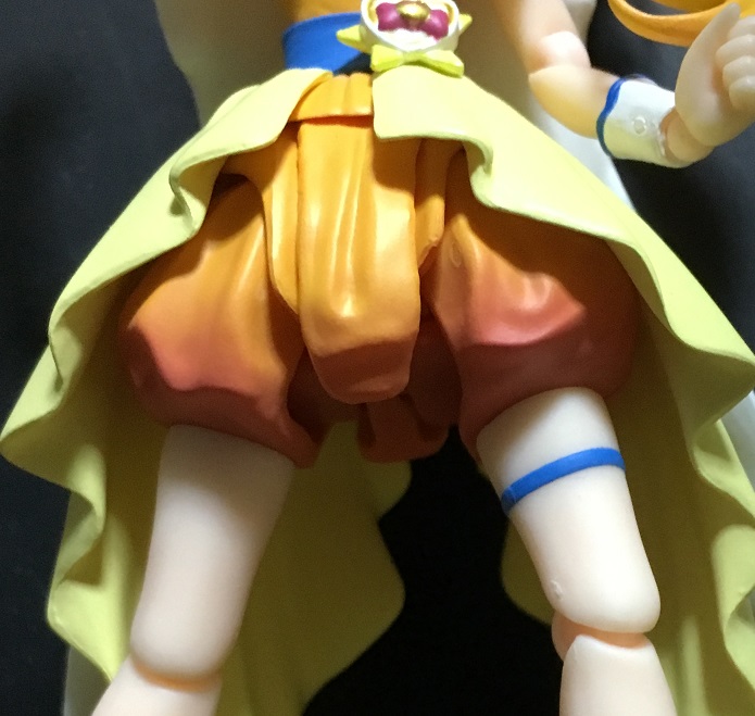 脚が前後に可動するように、かぼちゃパンツは中央と左右で3つに分かれています。