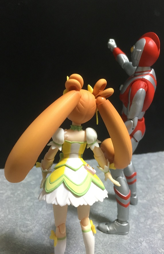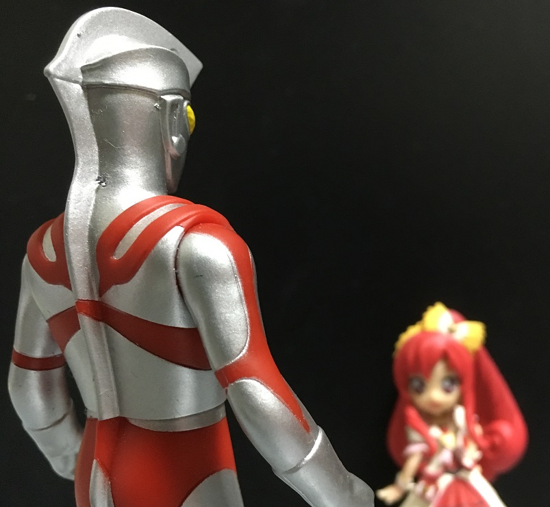 『ウルトラマンA』が元ネタなのにそれよりも後で登場したウルトラマンが出てくることに違和感を感じる方もおられるかもしれませんが、変身前が中学校の教師なのでエイティはプリキュアとの相性はバッチリ。最初から出すことに決めてました。