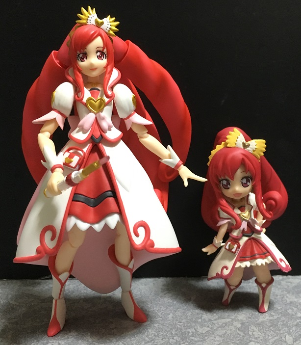 2015年10月11日の記事でお見せしたプライズ景品「ドキドキ!プリキュア あつめてフィギュア2」のキュアエースと並べて。残念ながら変身前の円 亜久里の立体物は皆無なので、気分だけでも味わおうと並べてみました。