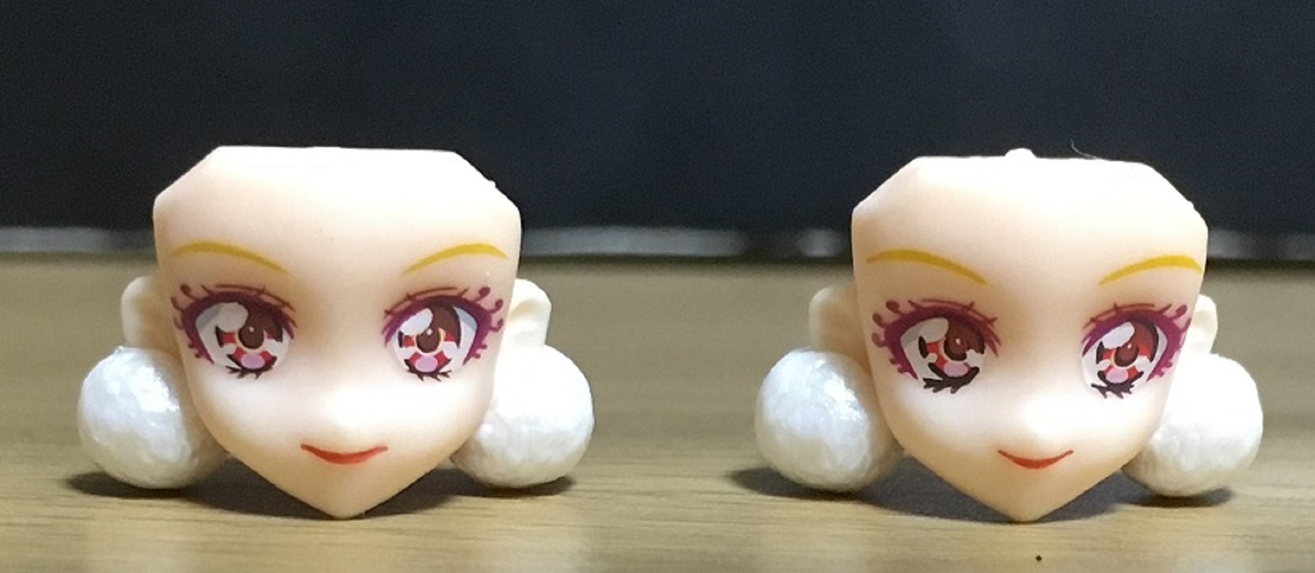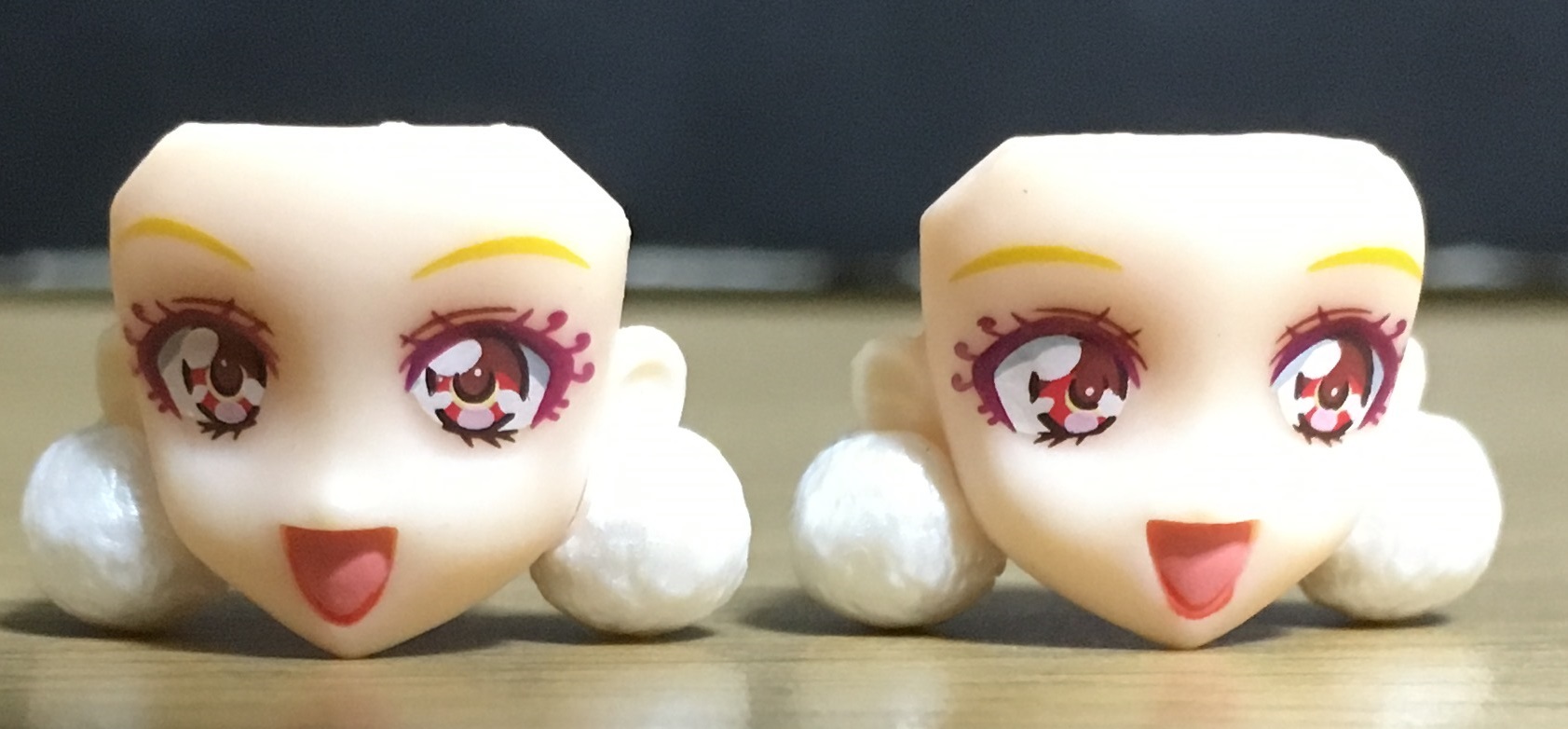黒目の位置とか白目の範囲、目にかかる影の大きさで別物と分かりますが、実物はサイズが小さいのと、窪んだ眼の部分と突き出た鼻の部分で影ができたりとかで、まあ肉眼で見分けるのは大変。