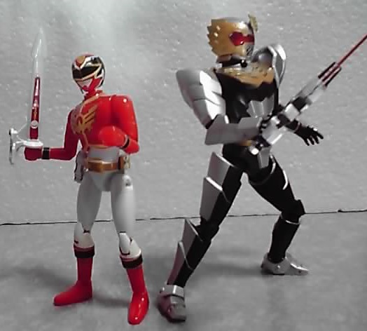 以前にもお見せした、食玩「ゴセイジャー天装!」のFA(ファイティングアクション)ゴセイレッドです。並べた画像で分かると思いますが、身を屈めたゴセイナイトよりも背が低いので、Figuartsよりもちょっと小さ目です。でも、貴重な『ゴセイ』のアクションフィギュアなので、一緒に並べておこうと思います。なお、発売されたのはレッドだけでした。(食玩のアクションフィギュアで全メンバーが発売されるということも無いのですが)