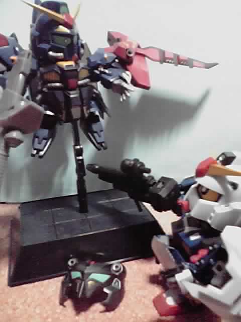 ちーびー戦士の灼熱騎士ガンダムF91と並べた画像です。