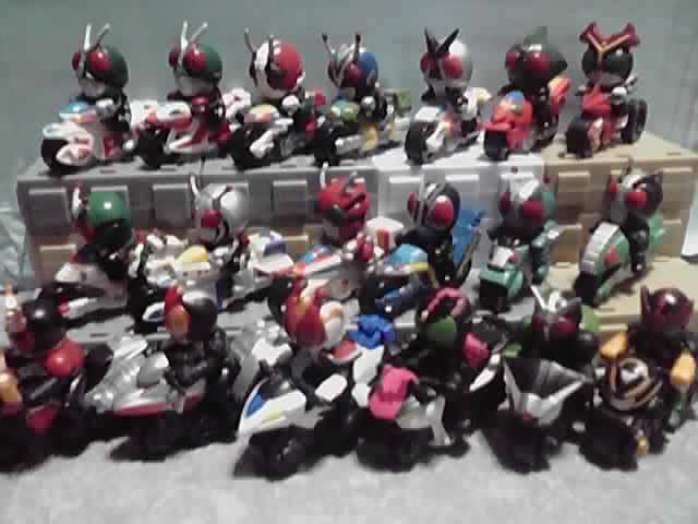 上の画像は、ポケットヒーローと食玩「激走!ダッシュライダー」のライダーマシンを集めたものです。