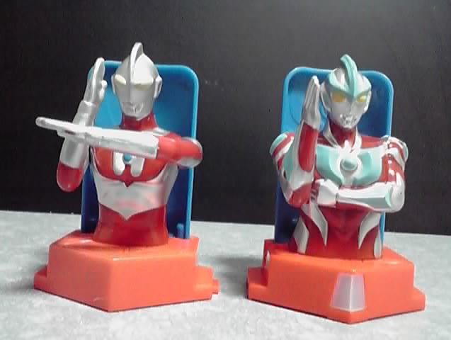 初代ウルトラマンとウルトラマンギンガです。リサイクル店でいろいろ入って100円で購入。公園とか駅前にあるオブジェっぽく使えないかと考えております。